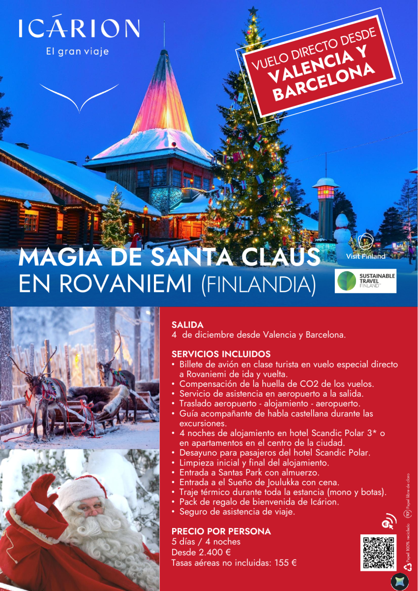 Magia de Santa Claus en Rovaniemi. Vuelo directo desde Valencia y Barcelona